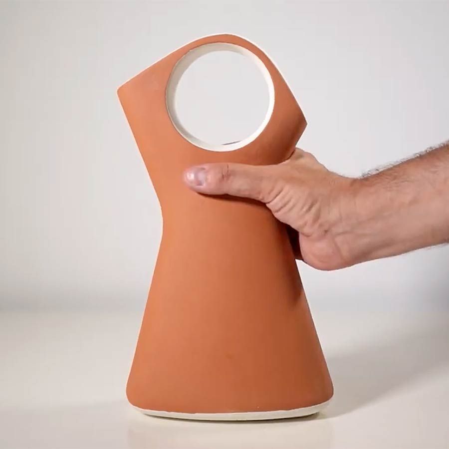 It had to be an object that could be easily picked up and lifted and meet the necessary requirements to be a botijo: it had to be made of ceramic and breathe so that the evaporation process could take place, it had to have a spout that allowed the water to flow out with inertia so that it could be drunk easily, it had to have a larger hole for filling, and finally, it had to have a handle so that it could be easily carried. All these conditions should not be seen as elements that are added to the object, but rather the final form should express unity, presence, clarity, and simplicity, so that nothing is perceived as an addition and, at the same time, this design should meet a need.